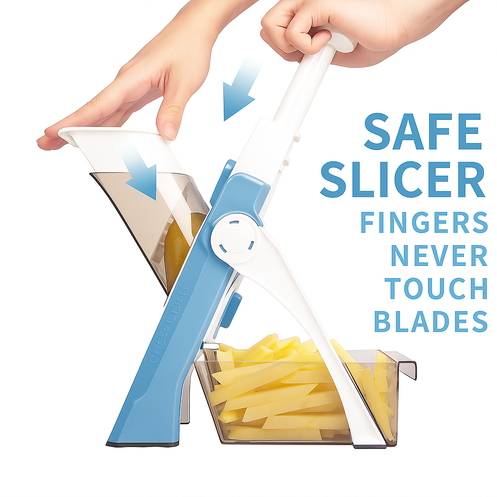 - SAFER SLICER: Safety mandolin slicer for any cook. Sharp hidden blade Slicing is fast, uniform, and easy to set up and clean up, and does not need to glove up or change the blade to use it, This is definitely an upgrade replacement your cooking daily.